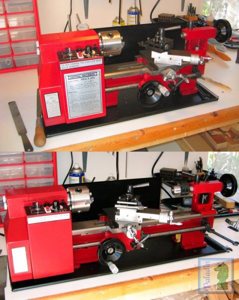 | 28. & 29. This is my "Little Machine Shop" as the SO calls it. It consists of a Sieg X2 Mini-Mill (converted to 20 tpi feed screws) and a Sieg C2 7x10 lathe, converted to a 14" bed using their C3 lathe's bed casting. These are very competent machines, when you understand that you have purchased a pre-assembled kit that needs to be disassembled, thoroughly cleaned, de-burred, aligned, lubricated with something other than fish oil, and reassembled and adjusted--with this done they are precise and accurate. | |||