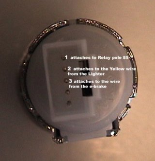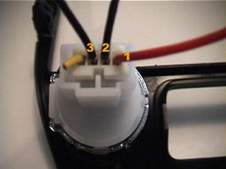 | Here are some photos of the inside of the Honda S2000 BRB. This switch uses both poles of a DPDT (Double Pole, Double Throw) switch to switch the relay, and to switch a diode across the relay positive terminal and ground when the button is released. This diode is installed so as to shunt the reverse EMF spike generated when the relay coil's field collapses to ground, thus preventing the switch contacts from arcing. By using both poles of the switch in parallel the current carrying capacity is nearly doubled, and there's a built-in sort of redundancy. A 3.5" floppy drive power connector makes a great connector for this switch--look here. | |