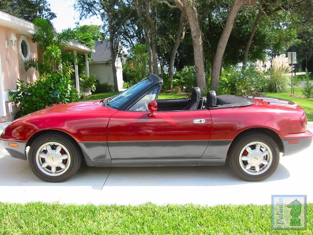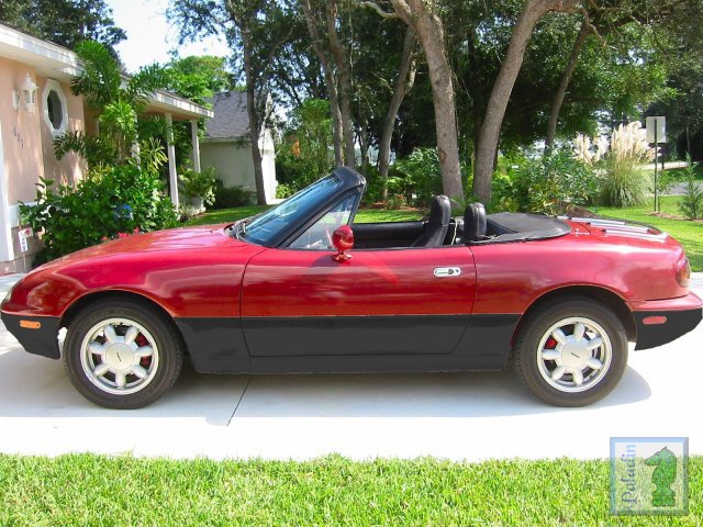 | I've been toying around with some personalisation of my Miata's exterior appearance. Here's a picture of her current look, and some "PhotoShopped" visualisations of some things I've thought about... |
